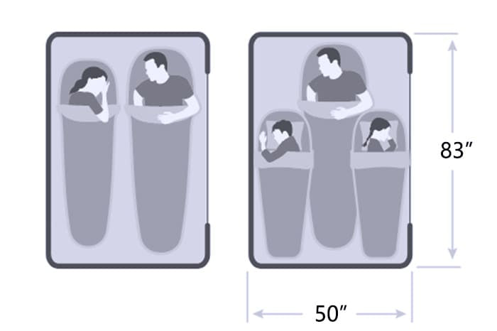 - When the tent is closed, you can store pillows and bedding inside. Open the tent and you're ready to camp!