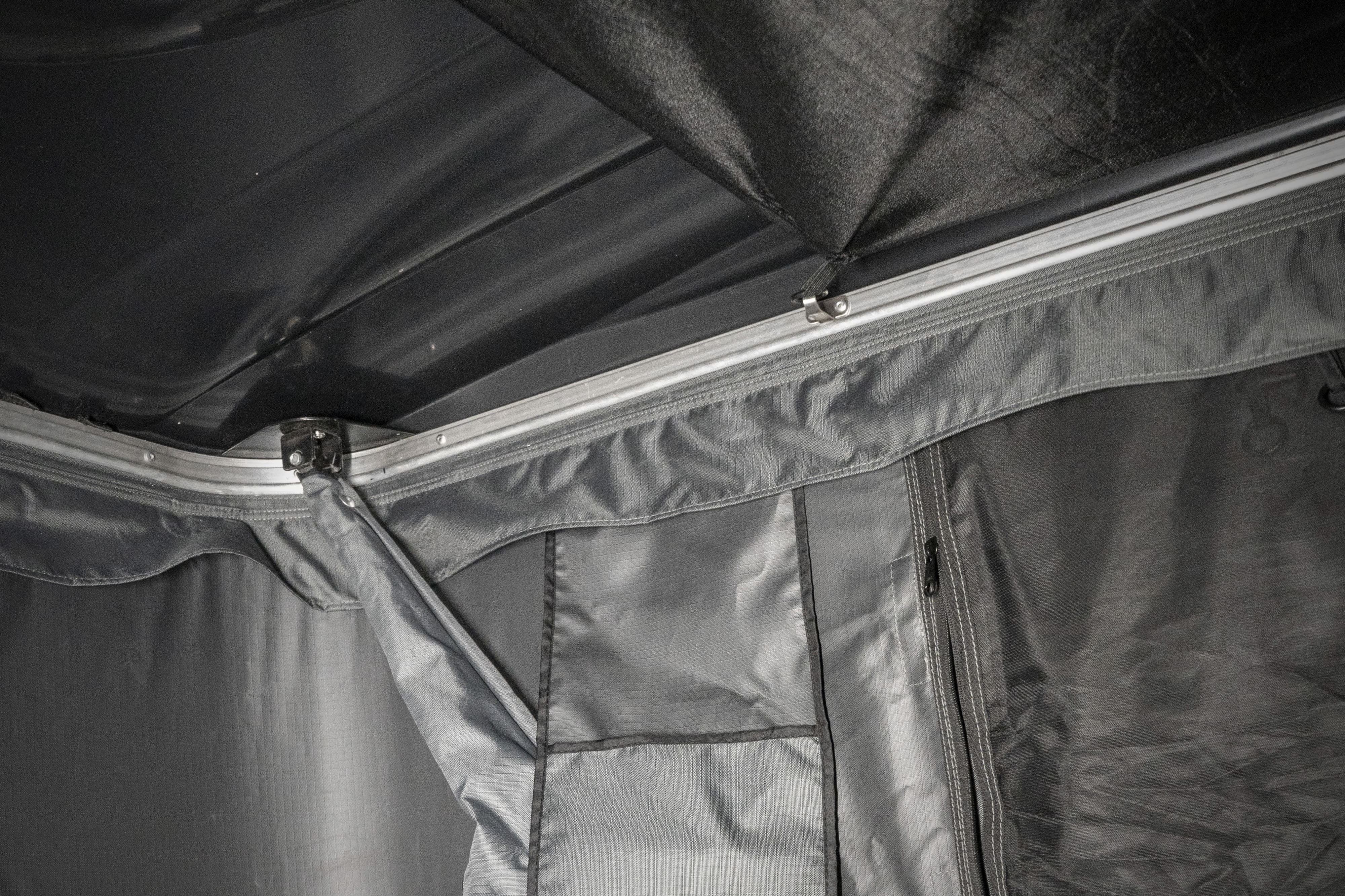 - The durable ABS shell remains hard and tough even in low temperatures and keeps the overall weight of the tent to a minimum. The tent is lined with anti-condensation material. The roof also houses storage space for clothes, blankets and shoes.