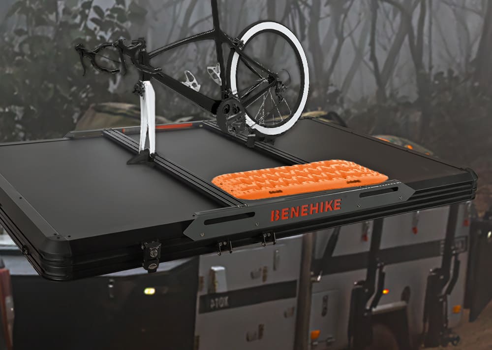 The BENEHIKE Alumabode V2 rooftop tent leads the industry with its integrated roof system seamlessly blending with off-road gear, boasting a capacity of 800 lbs! With a mere 6-inch increase in height and a weight of 196 lbs, it minimizes impact on fuel efficiency and payload.