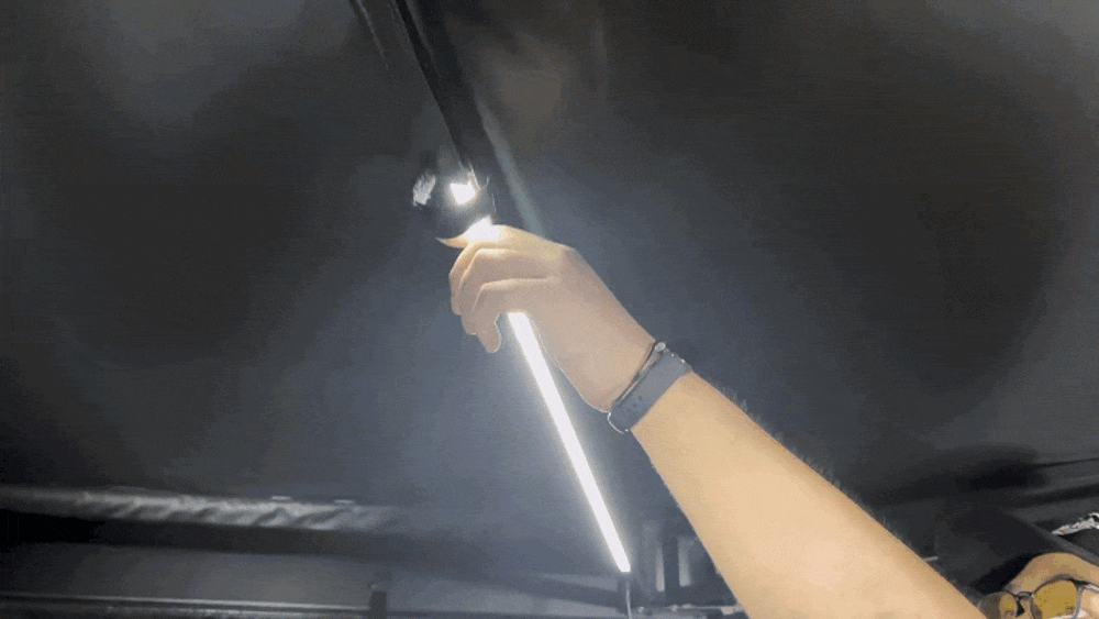 Three 60-inch long LED light bars, controlled via a central panel. Seamlessly integrated within the Z-shaped arms, featuring military-grade waterproof coating on both the inner and outer layers. Let you walk smoothly in the dark~