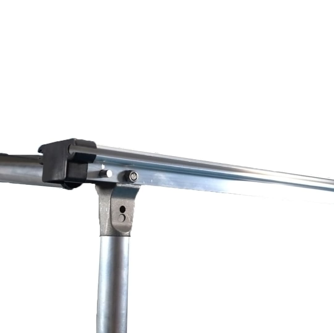 - Extend both supporting poles to the side and affix them to the roof of the awning.