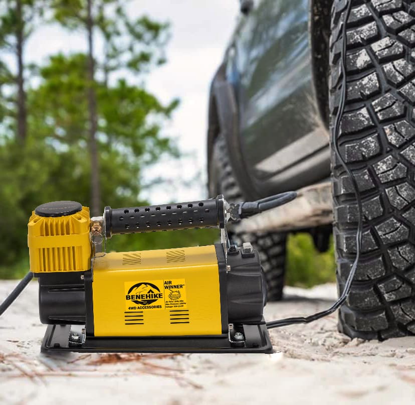 The AIR WINNER Air Compressor has been tested extensively across the United States in the toughest and most demanding conditions. Regardless of the challenges you encounter, the AIR WINNER is ready. Capable of inflating five 31-inch 4WD tires in under 10 minutes, you can conquer challenging tracks, inflate your tires, and be halfway home while other 4WD owners are still stranded at the stuck!