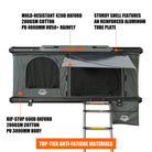 The Alumabode V2 is one of the easiest rooftop tents to set up, completing the process effortlessly within a minute. Its unique pop-up design and hydraulic struts allow easy opening, providing a comfortable space. The top-notch light-suppression technology ensures peaceful naps and immersive entertainment.