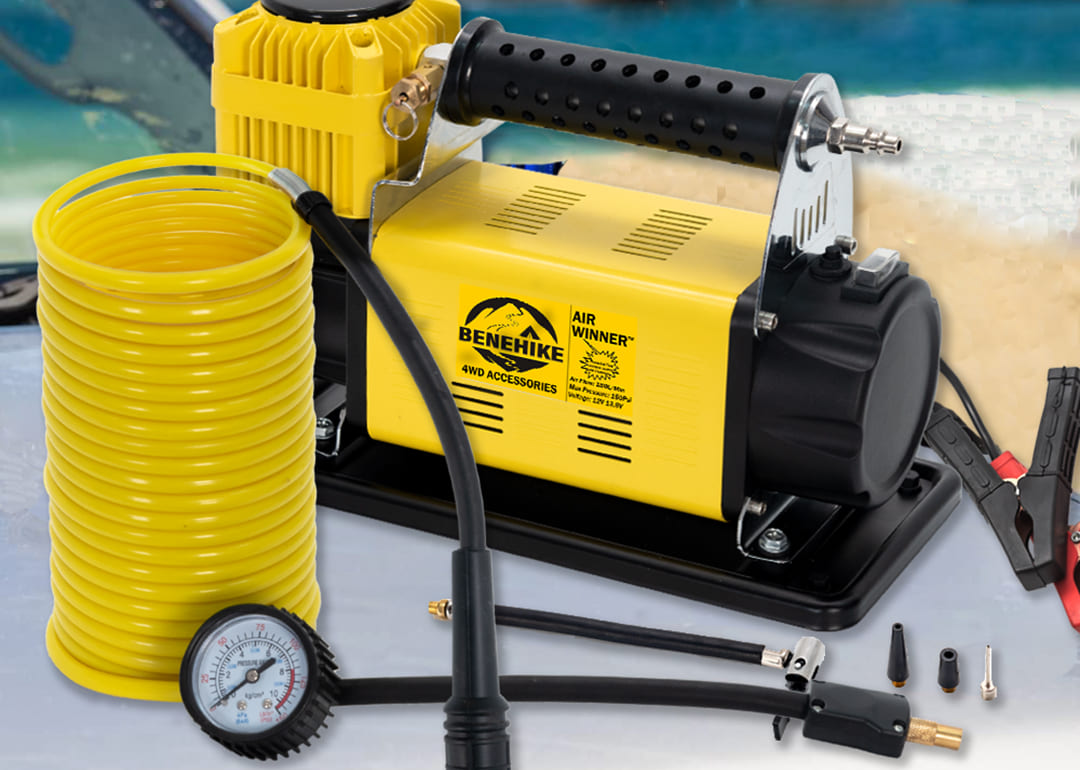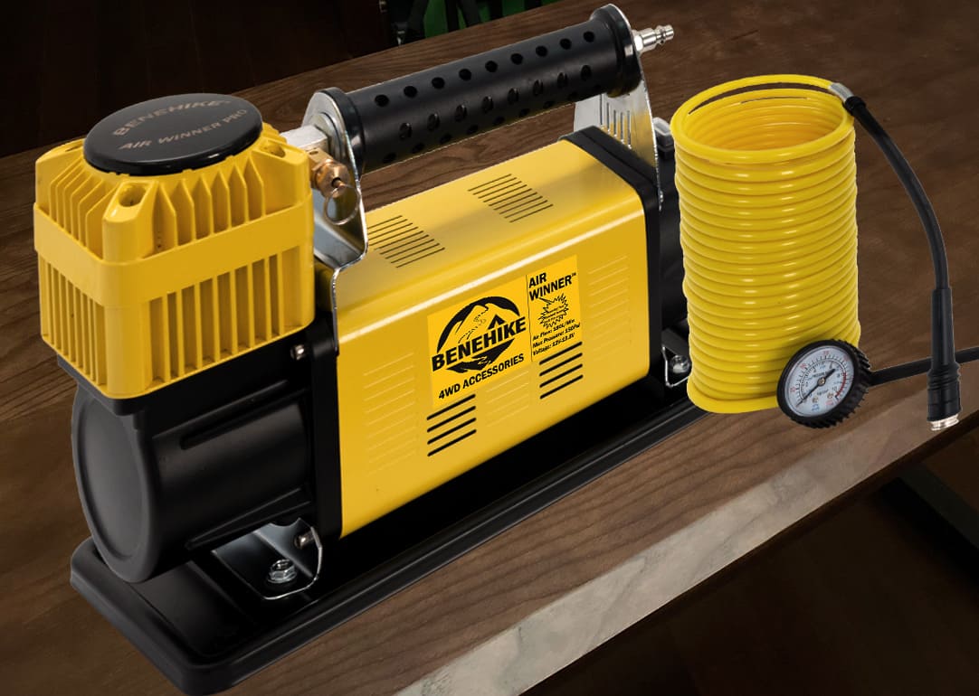 The AIR WINNER Air Compressor has been tested extensively across the United States in the toughest and most demanding conditions. Regardless of the challenges you encounter, the AIR WINNER is ready. Capable of inflating five 31-inch 4WD tires in under 10 minutes, you can conquer challenging tracks, inflate your tires, and be halfway home while other 4WD owners are still stranded at the stuck!