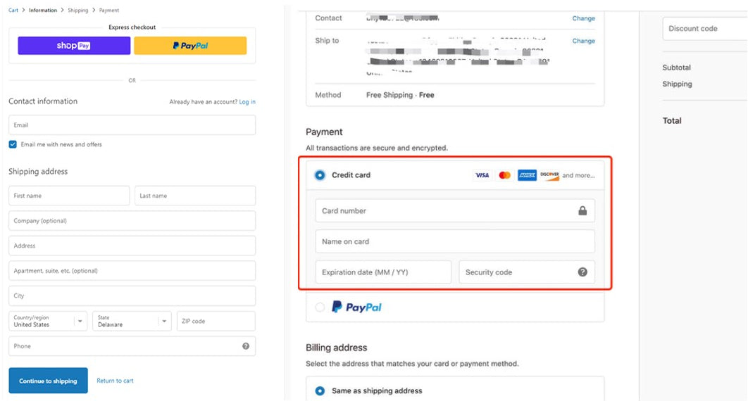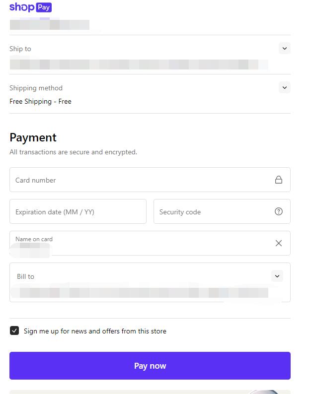 7. If you have already filled in the address in ShopPay, it will be automatically filled in when you pay. If not, you need to fill in your address on the page and pay.