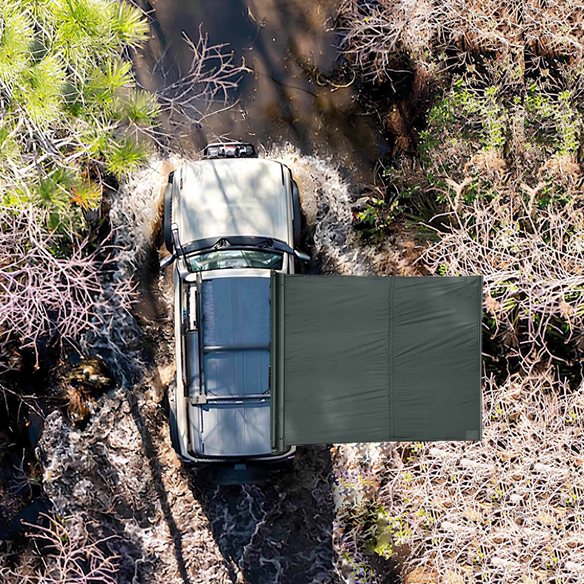The awning is a spacious and secure shelter with 222 ft³ or 6.3 m³ of protected space, perfect for families. It's easy to install and provides shade and shelter for outdoor adventures, camping, tailgating, or a day outside.